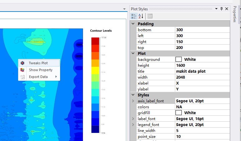 大家对默认的等高线图的样式不太满意的话,可以在图片上点击右键。通过出现的参数调整窗口进行一些可视化样式的调整。