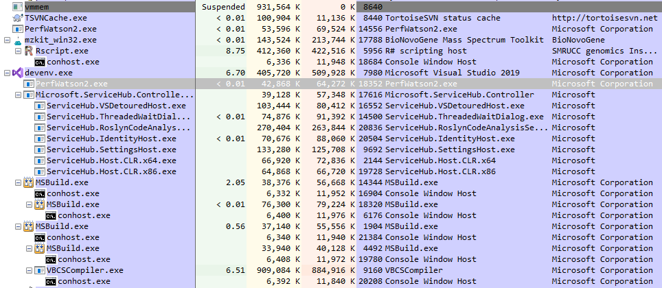 例如,下面的截图显示的就是微软的Visual Studio的MsBuild应用程序管线进程: