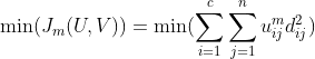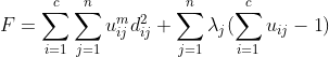 • dij平方指的就是欧氏距离下元素j跟中心点i之间的距离,整个表示的就是各个点到各个类的加权距离的和。
