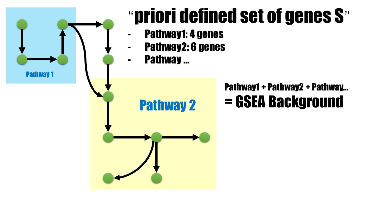 Aravind Subramanian等人于2005年提出了基于基因集 (gene set) 定义的基因富集分析方法。首先要定义基因集,也就是基于我们的先验知识(基因组注释信息),将基因富集,可以想象成,用一堆代表基因功能的箱子(bin)把具有相同或相似功能的基因装起来,起到了降维的作用,当然,每个基因可能同时参与好几种功能。