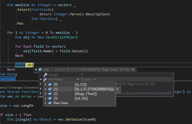 Dim vectors As New List(Of NamedValue(Of Func(Of Integer, Object)))