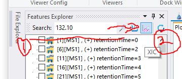 如果要查看XIC图呢?这个也比较简单。我们会需要分两步走:第一步,就是会首先需要填写我们的目标离子的质荷比;第二步,填写完质荷比之后就可以点击XIC的按钮查看基于一级母离子的数据所绘制出来的XIC图了。