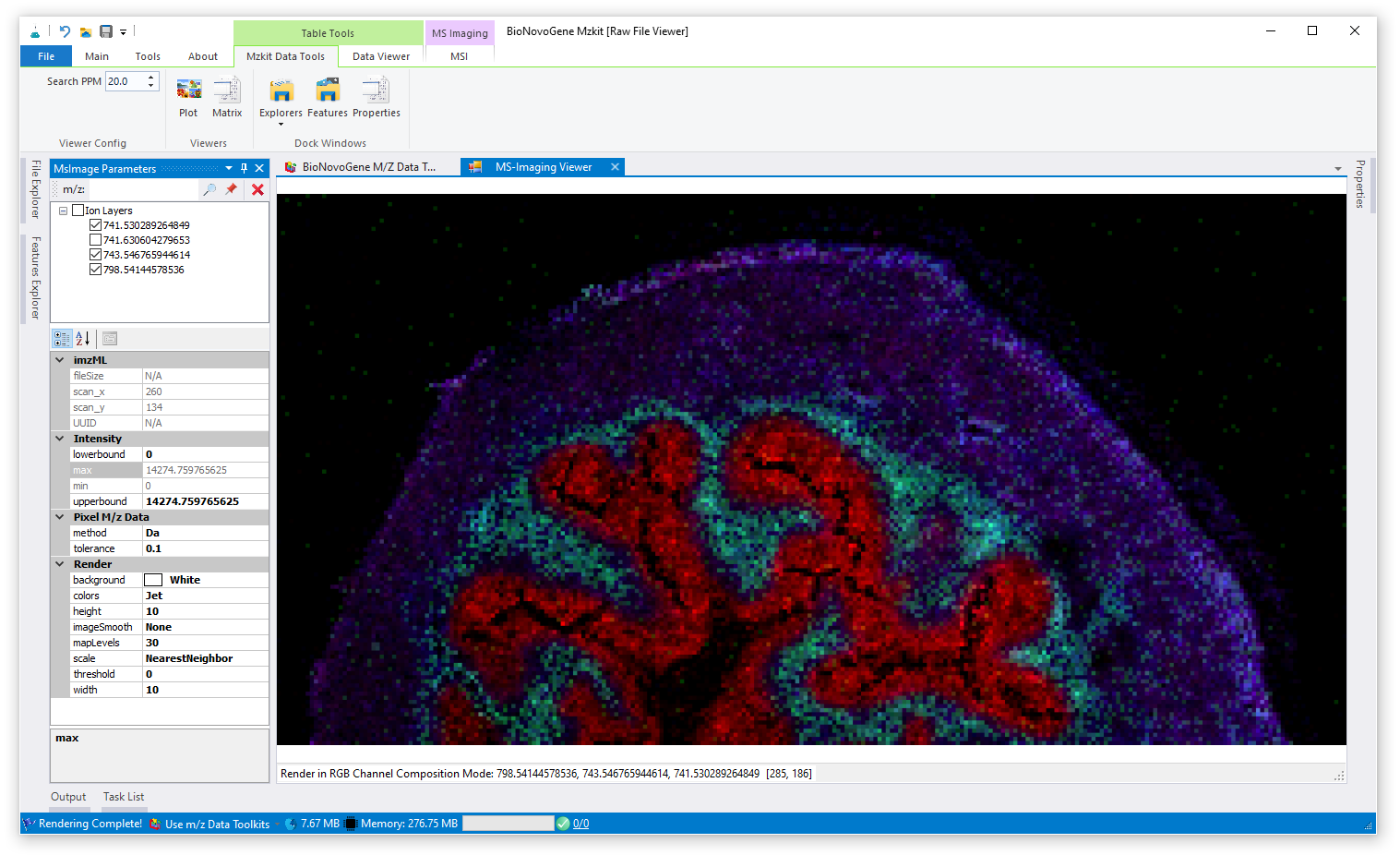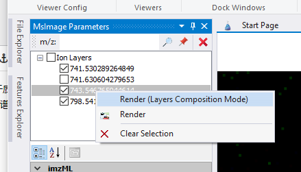 在加载原始文件之后,我们就可以选择离子进行质谱成像渲染了。