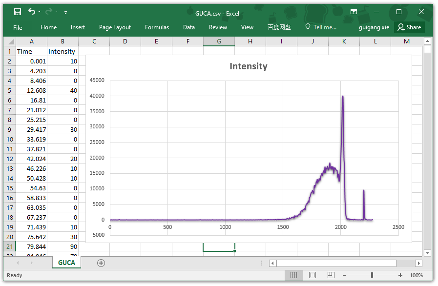 首先,我们从肉眼可以看见,目标信号可能存在有两个峰:第一个峰状态比较差,范围是1900到2100秒左右;第二个峰为就是一个比较窄和矮一些的尖峰,信号范围大概是2100到2200秒左右。