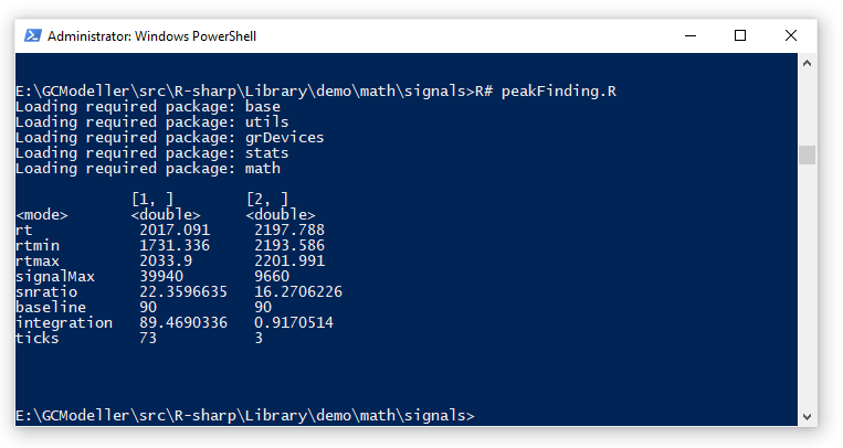 在R#脚本环境之中,我将上面的峰识别方法封装为一个函数,可以供大家用于峰识别计算。这个函数位于signalKit之中的signalProcessing包模块之中。使用这个R#脚本函数的时候,一般只需要传递进入一个信号数据对象即可。
