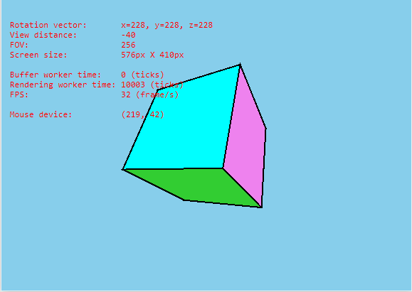 这个三维图形是基于较早之前的一篇VB.NET的教程文章【Rotating Solid Cube Using VB.NET and GDI+】中所给出的代码基础上完成的。