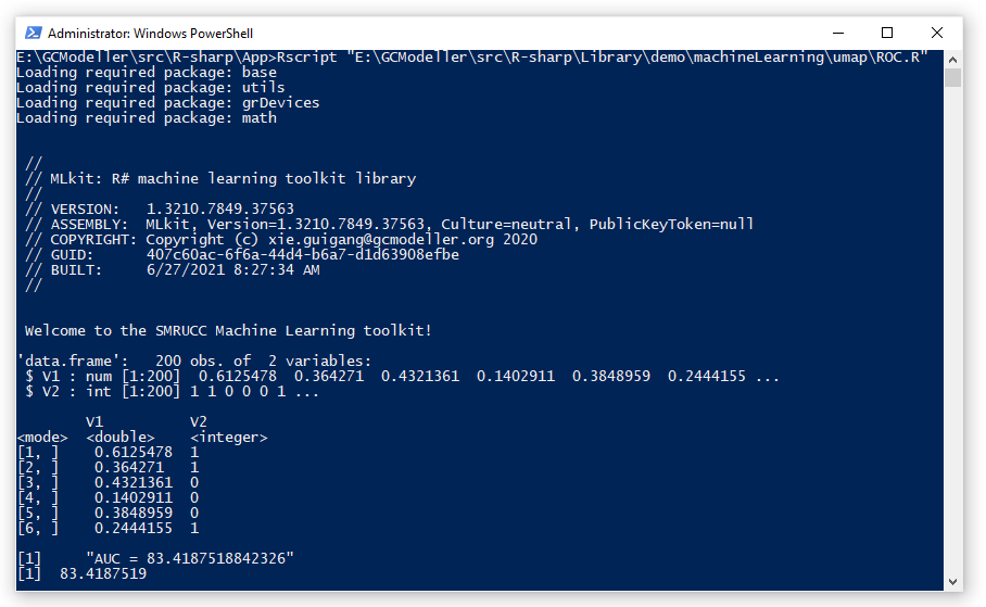 在R#环境之中进行ROC的计算分析,可以使用MLkit程序包模块自带的数据方法验证程序包中的ROC计算函数。下面介绍在R#语言中做ROC验证的一些主要函数: