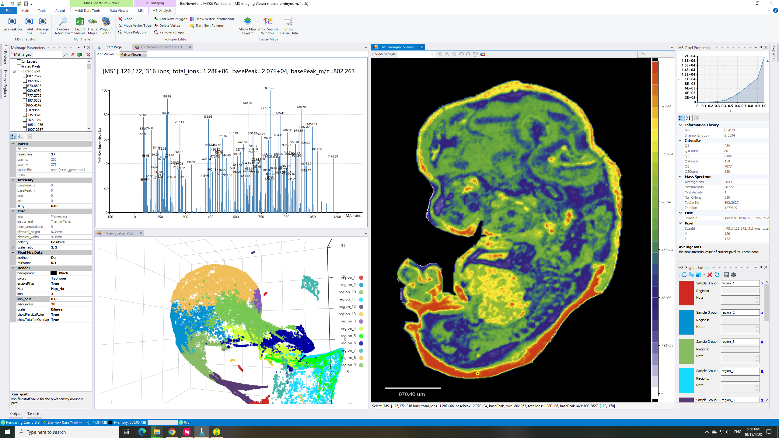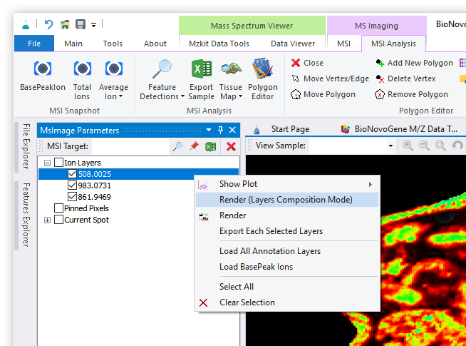 5. 最后,选择一个计算出来的m/z值,通过鼠标右键快捷菜单中的【Render】菜单进行成像操作