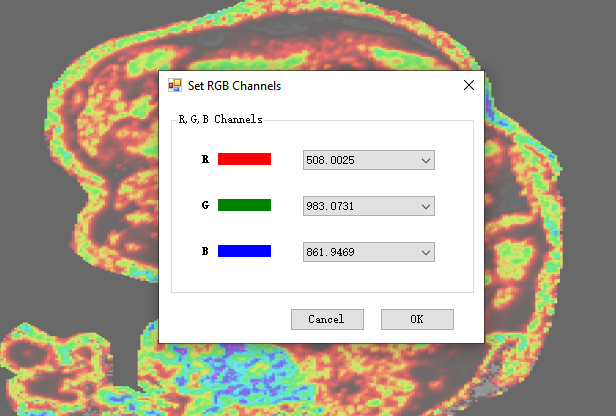 5. 接着在弹出来的对话框之中,设定好目标离子分别对RGB颜色通道的映射关系