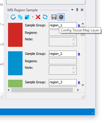 如果想要修改查看的空间分型图的透明度或者绘制的斑点大小,可以点击【MSI Region Sample】窗口中的【Config Tissue Map Layer】按钮,打开配置对话框。在对话框中修改【Opecity】或者【Spot Size】参数值即可。