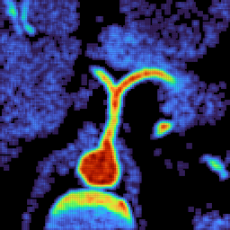 在上面所提到的线性变化转换过程,其实就是一个热图绘制的过程。我们一般按照不同的颜色谱做线性变换映射,就可以得到对应的不同颜色系列下的NRRD热图成像渲染结果。对于NRRD图像文件的热图成像渲染原理,其实是和质谱成像的渲染原理一摸一样的(对于质谱成像渲染而言,其主要的原理也就是将对应的扫描点上的目标离子的intensity值取出,构建出一个和NRRD文件中的光栅矩阵数据一摸一样的矩阵数据,基于这个矩阵数据进行线性变换映射到对应的颜色值完成热图成像可视化操作)。