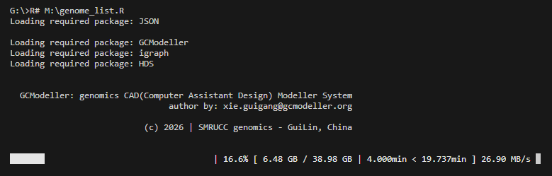 上面的脚本大概会花费掉3个半小时处理完整个300多GB的diamond结果输出表格,最终得到了约38GB的酶注释结果表格。然后我们就可以再基于下面的一段R#脚本完成从单个基因的酶注释结果合并输出为基因组的代谢酶注释结果,大约花费半个小时处理完这差不多40GB的表格文件为注释结果json文件: