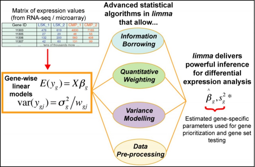 估计阅读时长: 22 分钟limma(Linear Models for Microarray Data)是一个基于R语言的Bioconductor包,最初用于微阵列数据的差异表达分析,现已扩展支持RNA-seq数据。其核心思想是利用线性模型(Linear Models)对基因表达数据进行建模,并结合经验贝叶斯(Empirical Bayes)方法在小样本情况下增强统计推断的稳健性。 Order by Date Name Attachments limma • 119 kB […]
